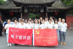 在三苏祠,党支部成员主要参观了三苏祠的楹联、祠堂、古树、古井等,认真聆听了讲解员对三苏生平、主要文学成就和家训家风,以及三苏祠历史沿革、东坡文化研究传承等介绍,感悟“读书正业、慈孝仁爱、非义不取、为政清廉”的三苏家训家风,领略东坡先生“轻财、清政、亲民、勤政”的为民情怀,在“三起三落”官宦生涯中不忘“问计民生、扶危济世、科学施政、造福一方”的初心使命,从这些历史的回声中深刻体味三苏父子非凡的文学成就以及高尚清廉的人格魅力。
