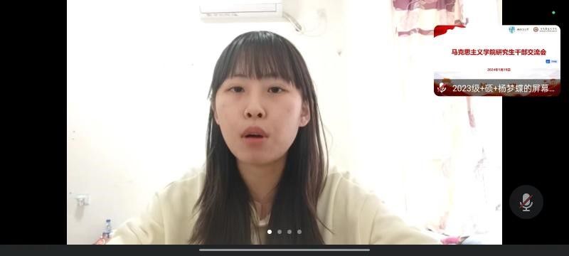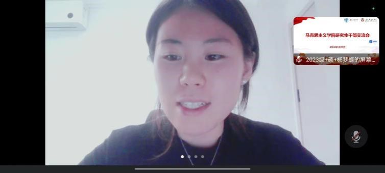 2023级博士班班长冯定国讲到,2023级博士班在这半年的学习和生活上,总体上达到了优良的效果,建议学院能够增加开设一些关于博士选题的系列讲座,帮助他们在选题上有清晰的目标。研究生会主席团成员章宇涵介绍了研究生会的基本情况以及对本学期研究生会所开展的工作进行汇报。