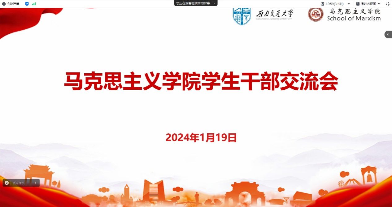 在本科生学生干部交流会上,各级负责同学依次发言,总结了班级建设和团支部建设情况。学生会主席团和青协会长团代表就本学期工作成果,工作中存在的问题和不足以及下学期的工作计划进行了汇报。随后,学生干部就班团建设工作中存在的困难和压力、学业和就业等方面进行了交流。辅导员杜晓林老师肯定了各级学生干部工作的有序推进,同时也对学生工作中存在的不足和问题进行了回应。