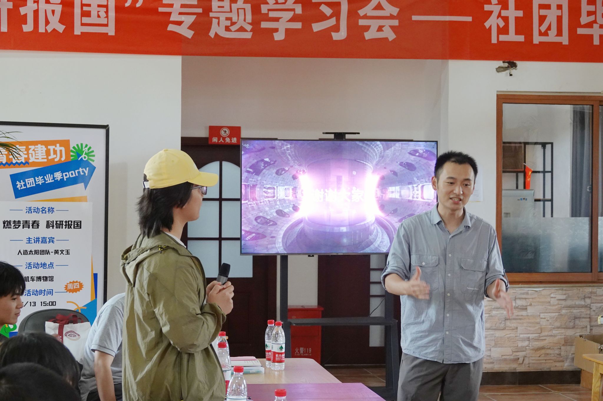 为弘扬新时代科学家精神,提升青年学子对核工业的兴趣,为即将毕业的交大学子种下科研报国的种子,365英国上市网站官网于6月13日下午在机车博物园内举办社团毕业季Party之“燃梦青春 科研报国”专题讲座。本次讲座邀请到核工业西南物理研究院助理研究员、“人造太阳”博士科普团科普讲解员黄文玉博士作为主讲人。讲座由365英国上市网站官网团委书记赵晨主持。