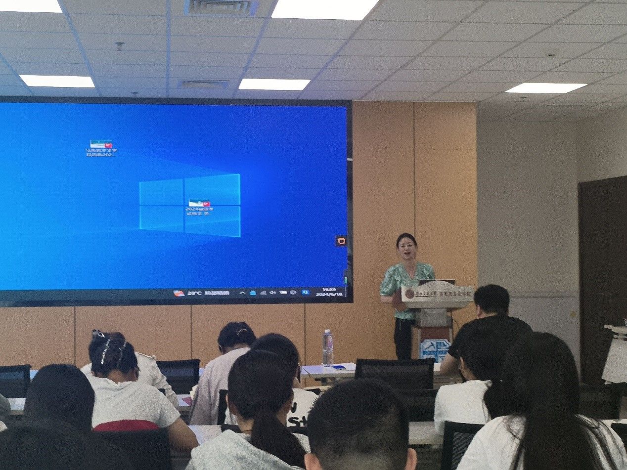 辅导员杜晓林从本学期工作总结、下学期工作安排和以及毕业注意事项三个方面进行介绍。建议同学们要早做规划,明确自己的职业目标和发展方向。同时也鼓励同学们要积极参加各类实习实训活动,积累实践经验,提高自己的综合素质。并且与同学们分享了学校就业相关资源与平台,为有需求的同学提供帮助。