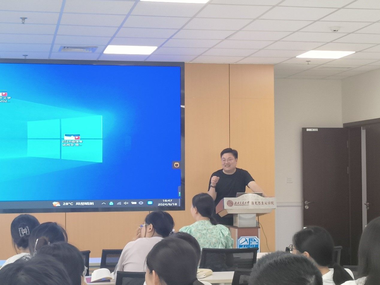 班导师景星维介绍了当前的就业形势和市场需求,让同学们对就业市场有了更加清晰的认识。并且,他详细解读了升学读研的相关政策和要求,尤其强调了考研选择的重要性,鼓励同学根据自己的需求和自身能力考量选择合适的目标和道路。