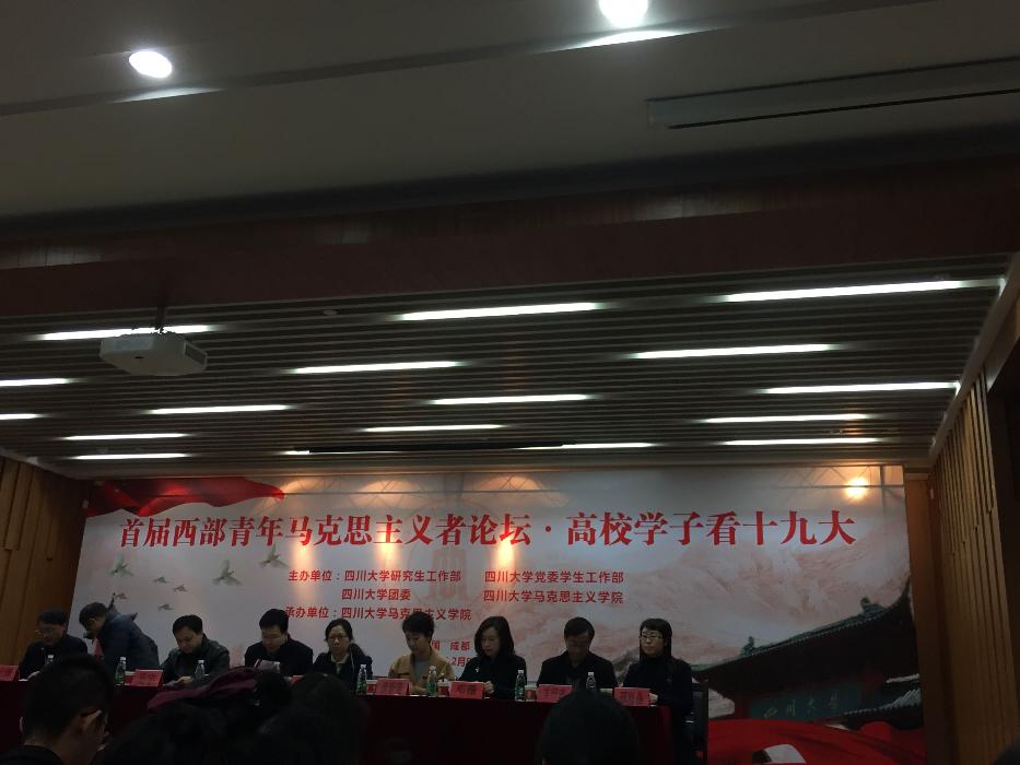 2017年12月8日,我校365英国上市网站官网的唐瑶、孙国杰、邓丽华三名硕士研究生受邀出席了由四川大学365英国上市网站官网主办的首届西部青年马克思主义者论坛•高校学子看十九大会议并作相关主题发言。此次会议汇聚了省内外十四所高校,并且每一所高校都有硕士生或博士生参与发言。