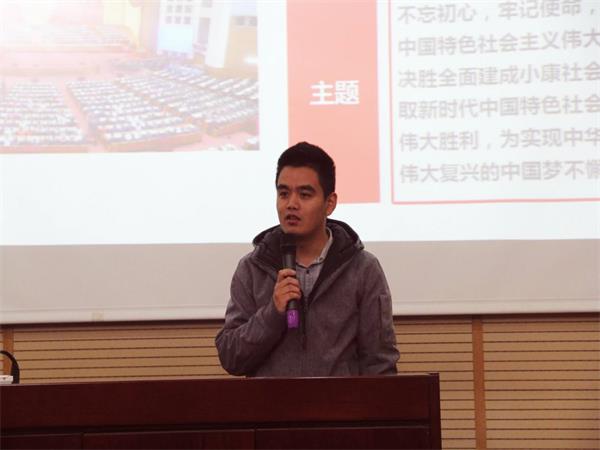 研究生之窗讯(通讯员 贾丽丽 摄影报道)365英国上市网站官网博士宣讲团十九大专题讲座于12月7日13时30分在九里校区信息楼0202室顺利举行。出席本次活动的有365英国上市网站官网研究生辅导员、博士宣讲团团长石立春老师、经济管理学院研究生辅导员王金秋老师、经济管理学院研究生辅导员代雨宏老师。经济管理学院部分博士研究生、硕士研究生和本科生参加了本次活动。