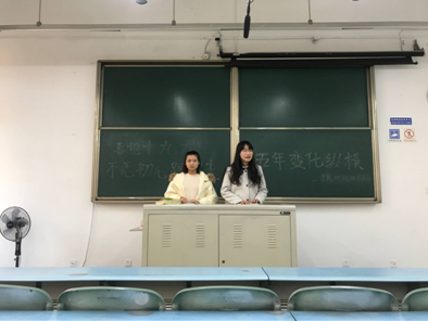活动开始,两位团支书简要介绍了本次活动“喜迎十九大,不忘初心跟党走”以及“五年变化纵横”两个活动主题,并简单地分享了自己的感悟。活动采取分组讨论形式进行,两班同学展开了热烈的讨论,纷纷踊跃分享自己的心得,互相交流对主题的感悟与体会。讨论结束后,两位团支书随机抽取了几个小组派代表上台发言。