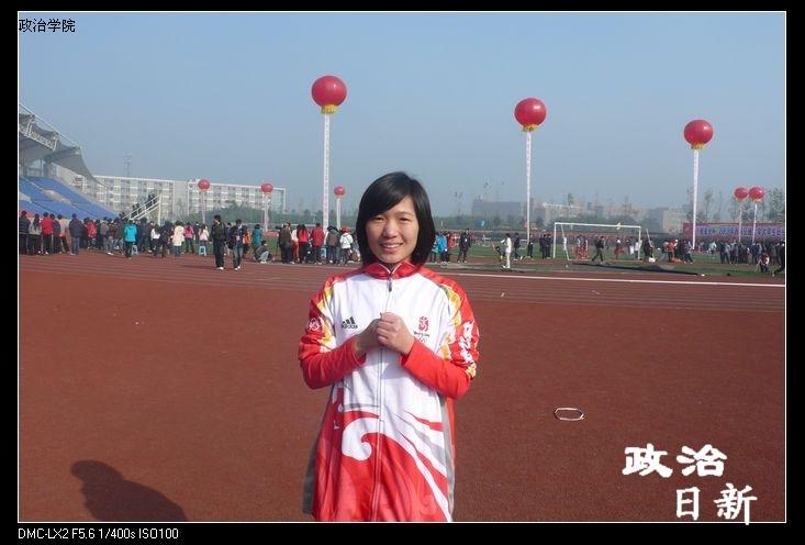 采访一开始,她就首先表达了她的歉意。她觉得自己表现不够好,不能为政治学院争光,有些内疚,从她的话语当中明显感受到她那份集体荣誉感,让记者深受感动。她还总结了自己的不足之处,她觉得自己平时锻炼的少了,体能上有所下降。接下来,记者问她对我们政治学院有什么期望或感受,她表示很感谢学院做的工作,包括为她们运动员细心地准备钉子鞋,为方队准备的衣服等等,让她很感动;这次的运动会,是我们政治学院正式精彩亮相,学院领导所做的工作真的很到位,充分体现了人文关怀。她希望学院每个人都齐心协力,共同奋斗,政治学院就一定能够壮大起来。从谈话中,她的活力与乐观给记者留下了深刻印象。虽然对自己成绩不算满意,但她表示自己已经尽力了,所以不后悔不气馁。她还对接下来参赛的选手提了一些建议,那就是:要调整好心态,集中注意力,不要太在乎结果,只要自己尽力就好。她说她最爱一句话,“你知道,你努力,花努力的开。你不知,你厌恶,花儿努力的开”。不管怎样,一定要坚持不懈努力前进。当记者问到对运动是否有种特殊感情时,她笑着表示一直就很喜欢运动,觉得运动不仅对身体有益还对心理有益。每当烦恼或情绪低落时,运动一下,就会豁然开朗。