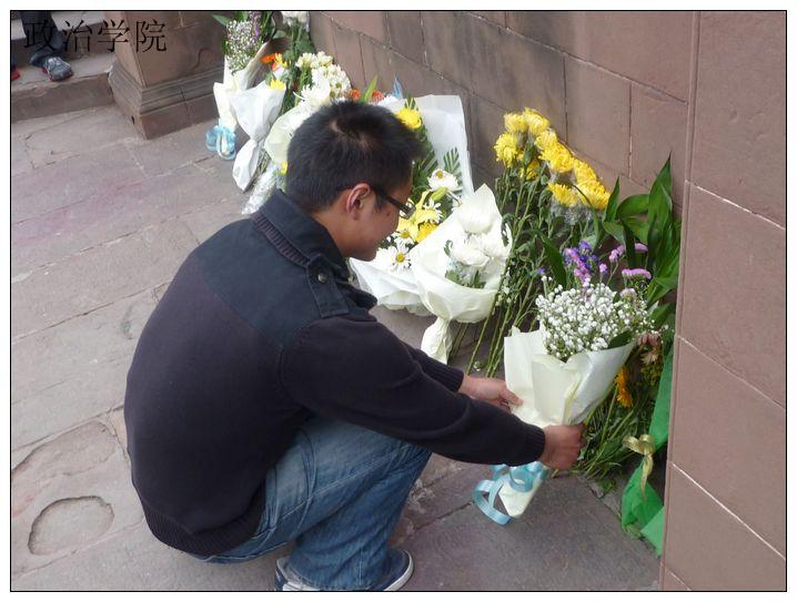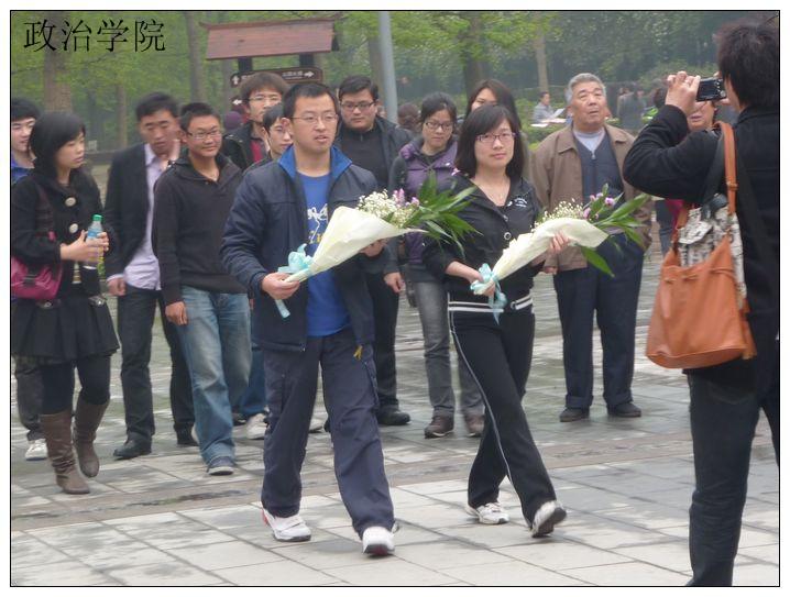 经过一个多小时的路程,早上8:50,政治07级和08级党支部成员到达了人民公园:成都的早春,乍暖还寒,在清净的公园中,晨练的身影处处可见,而公园内矗立的高大的“辛亥秋保路死事纪念碑”显得格外的肃穆,周围也摆满了市民献上的鲜花——大家希望通过这种方式来表达对那些爱国志士仁人的缅怀之情。