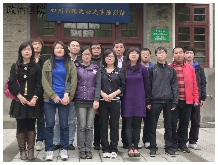 “我宣誓,我志愿加入中国共产党,拥护党的纲领……”上午9:00,在“辛亥秋保路死事纪念碑”下,政治学院07级党支部和08级党支部本次新发展的预备党员在08级党支部书记敬瑜林的带领下在纪念碑下宣誓入党,铿锵有力的宣誓引来周围市民的关注,其中还有许多市民带着孩子在旁边仔细地观看,希望通过这种形式给他们的孩子以思想上的教育.随后,两个年级的党支部成员又向纪念碑献了花环,并向纪念碑鞠躬,以此表达对革命先烈的缅怀之情。随后,所有支部成员去参观了保路运动史事陈列馆,通过观赏馆内展示的一系列革命进程的史事,感悟了当时仁人志士的轰轰烈烈的英雄事迹,也感悟到了他们赤诚的爱国精神。最后要离开时,所有成员在纪念馆前合影留念。