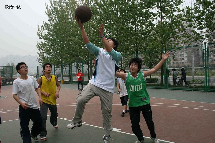 为丰富同学们的业余生活,缓解学习压力,增强体魄,加强各年级同学间的联系沟通,增强凝聚力。4月11日上午10点,政治学院院内篮球赛如期在北区篮球场举行。角逐双方分别是07级与08级政治学与行政学专业的同学。曾因几分惜败的07级同学把这次比赛戏称为“复仇之旅”,势必注定这场球赛的激烈和精彩程度不亚于刚刚圆满落幕的CUBA联赛。