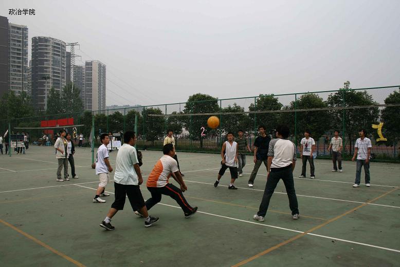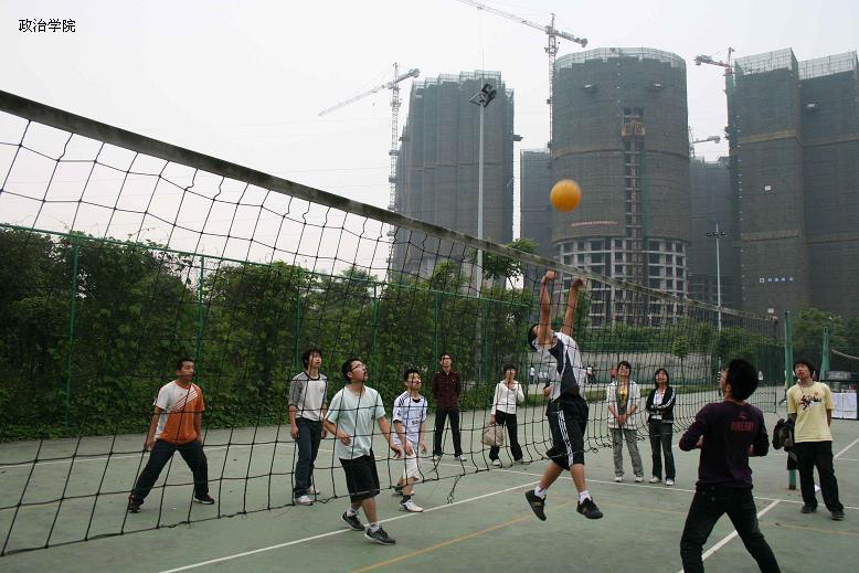 下午5点25分,政治A队的选手们以及忠实的啦啦队顾不上吃饭,就匆匆赶往排球场。比赛开始之前,双方选手互相握手并打热身球,为整场比赛创造了良好的气氛。随着裁判哨音吹响,比赛正式开始。首先是由材料A队决定选场地还是选发球,最终,他们选择了场地。在第一节的比赛中,政治A队的选手士气高昂,愈战愈勇,比分一直遥遥领先。到达局点时,政治A队的选手互相鼓舞。或许是压力太大,材料A队的选手发球失误,白白送了政治A队一分。就这样,政治A队以21:17,以4分的优势拿下了第一节。