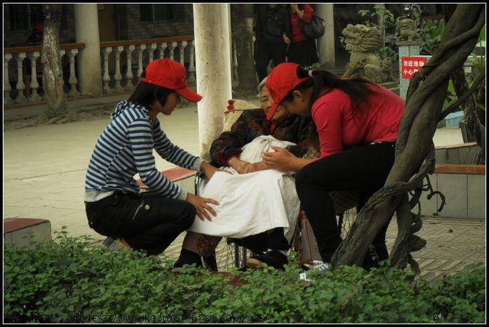 来到了敬老院之后,我们发现很多老人已经坐在敬老院的小广场上静静等候我们的到来。于是我们迅速展开行动,有些同学找老人们唠嗑,嘘寒问暖,听老人们讲自己的故事;有些同学则搀扶着老人们在院中悠闲的散步;有些乖巧的女生则为老人捏捏腿,捶捶背,如同对待自己的父母一般。不知几时起,院中想起了红色老歌,和着的那沧桑的曲调,老人们显得更加精神爽朗,动情之处还会哼上几声,仿佛又回到了那个激情似火的年代。