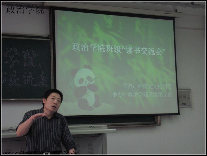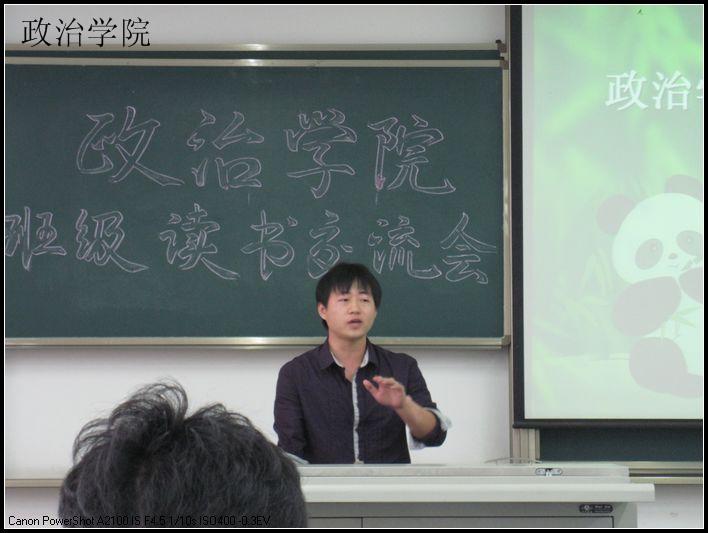 2010年10月22日星期五下午四点到六点,政治08-1班开展了读书交流会。此次交流会由政治学院团委主办、政治08-1班团支部承办。政治学院政治学系主任王习明教授出席并做了精彩发言。