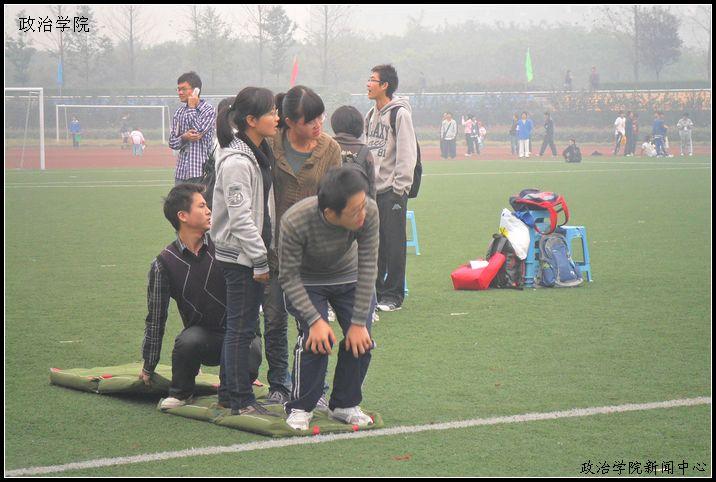 2010年11月6日早上9点半,在激烈的男子200米比赛后,趣味运动项目“同舟共济”又拉开了序幕。政治学院全体参赛队员早已在起点上整装待发。