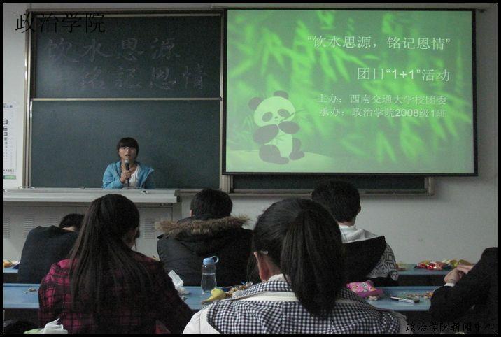 11月16日晚 7:00,政治08(1)班在x2422教室开展了以“饮水思源,铭记恩情”为主题的团日“1+1”主题班会。