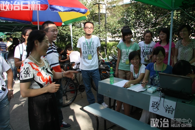 下午,校党委副书记朱健梅视察各学院迎新点。来到政治学院迎新场地时,朱书记认真询问志愿者们迎新情况,并对师生们的志愿工作表示了肯定。在校领导的关怀下,同学们更加认真地工作,努力让每位新生和家长都清楚地了解入学程序,并让他们感受到志愿者们的热情和专业。