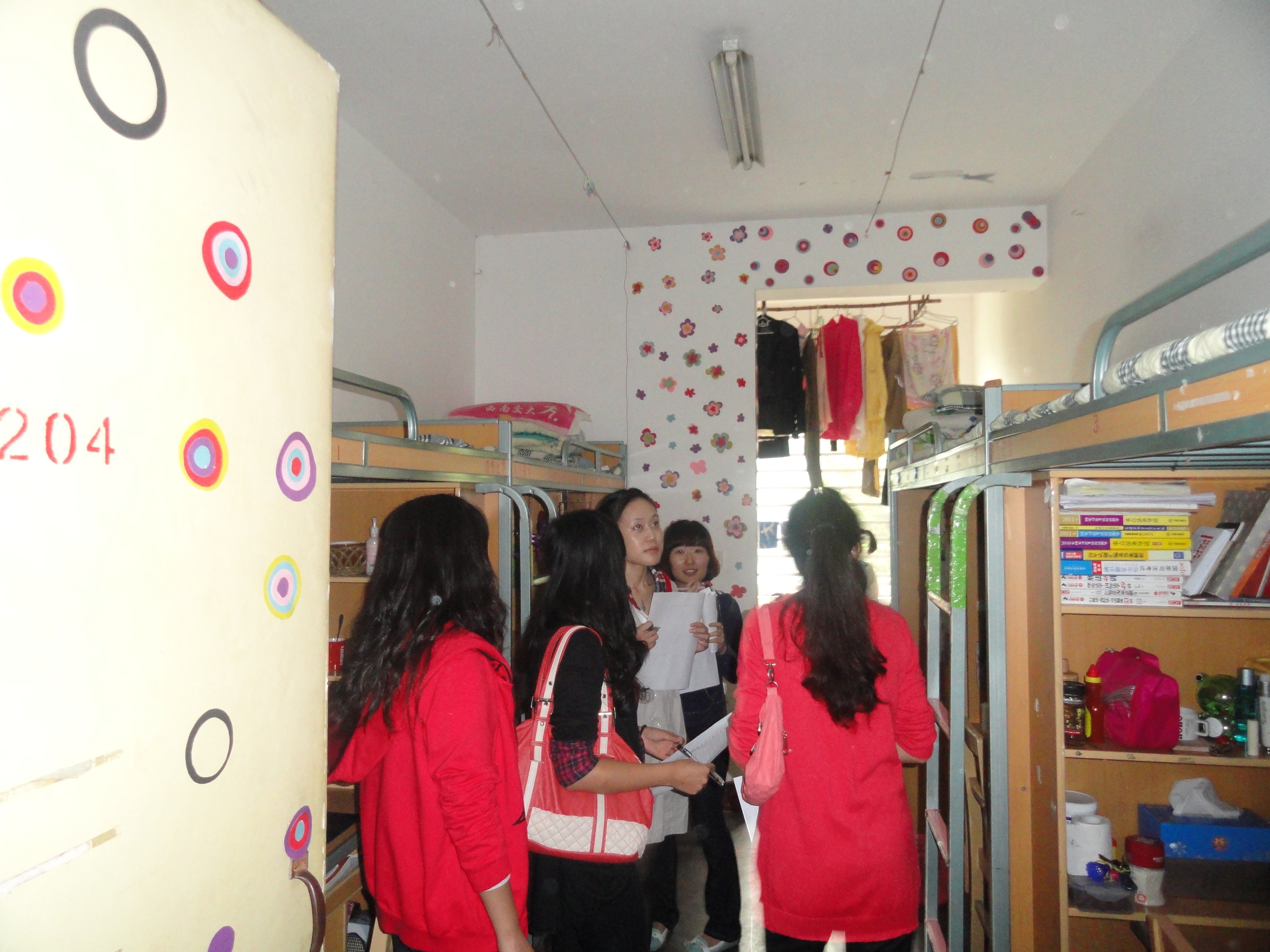 经过了前期的认真筹划和准备,下午1点整,在院研究生会的各位干事的引导下,担任评委的辅导员高阳老师,校研会综合事务部部长丁阳,副部长洪彧,外语学院主席芮婧,政治学院学生会副主席李澄路、办公室主任刘丽萍、实践部部长邹洪杰、副部长徐婷和同学陆续进入报名参赛的宿舍进行参观评选。很多同学一路伴随参观,场面十分热闹。