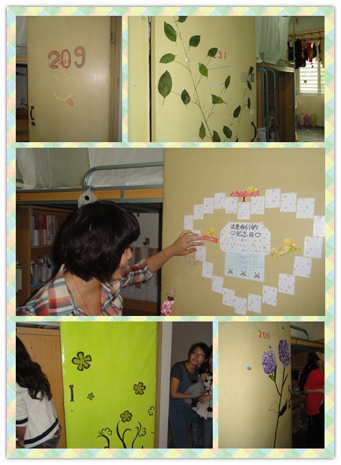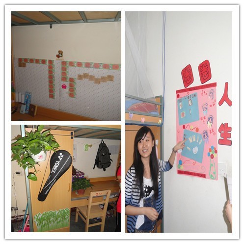 这次的寝室文化节,得到了同学们的积极响应,报名参加的宿舍共计11个,覆盖了学院新生宿舍总数的73%。参赛的宿舍,别出心裁,围绕各自的文化主题,充分发挥想象力和创造力,使得自己的寝室与众不同。从宿舍门的设计,到墙面的主题展示,以及干净整洁的洗漱区,大家将DIY发挥的淋漓尽致,用心而不遗忘每一个细节。有的寝室,更是派出了讲解员,将她们布置宿舍时的一些设计想法告诉了大家,生动有趣。