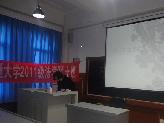 2012年3月8日上午,政治学院2011级法学硕士班的同学在3439举行“司法考试经验交流会”。邀请本班去年司考成功的五名同学讲述他们的“司考成功之路”,同时也有部分法律硕士班的同学前来参加。同学们都认真聆听,感受他们的艰辛和快乐,分享他们的成功经验。