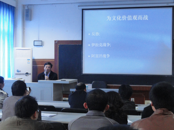 (记者 廖灿 报道 何军 摄影)为了丰富广大师生的业余生活,帮助同学们培养更积极、更理智的爱国主义情操,2012年3月19日下午四点一刻,政治学院的师生在3439教室欢聚一堂。由中国社会科学院哲学研究所副所长、研究员、博士生导师孙伟平教授为大家奉献了一场关于“文化自觉与当代中国文化建设”的学术讲座。我院院长林伯海教授,副院长田永秀教授以及其他老师一同参加了本次学术会议。此次讲座,由我院马列主义理论教研部主任苏志宏教授担任主持。