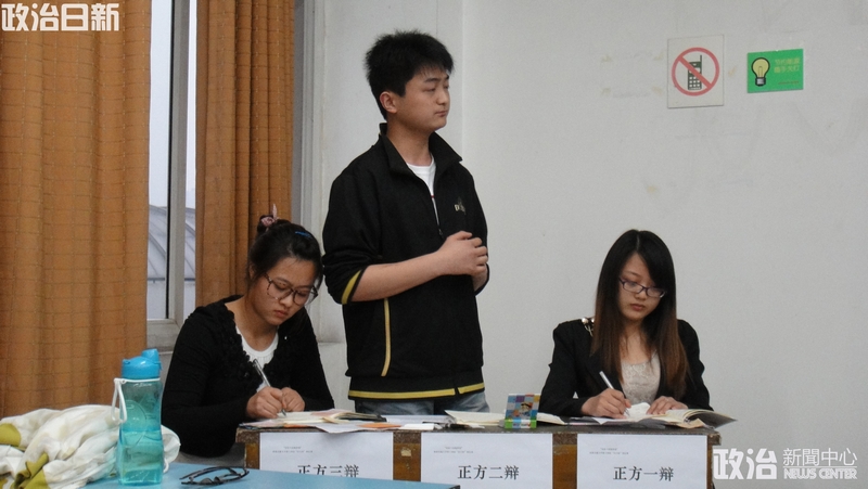 随着主席的宣布,辩论赛正式开始,首先由政治学院进行一辩,提出正方观点:“宽教更为有效”,并且由此质问对方何为严教?尔后双方用具有高度概括性的陈述为本场辩论开篇立论。在接下来的环节中,正方与反方辩友旁征博引,幽默风趣的语言不时引得台下观众的喝彩与掌声,双方在辩论中你来我往,不分高下。正方讲究的是对观点的详细阐述,频频夺得观众的叫好,反方辩手也不示弱,据理力争。最后,到了比赛的高潮环节:自由辩论。时间上相对充裕,双方辩友更是激情四射,生怕落了下风。值得一提的是正方的二辩董燃燃同学,充足的准备,从容的应对,灵活的思维,提出灌输式与启发式的教育模式给对方,为本次比赛争得很好的空间,尤其是他那夸张的表情更是博得了同学们的一致好评。最后比赛进入总结陈辞阶段,双方辩友针对以上观点向对方的漏洞做最后的回击,为自己争取最后的优势。值得补充的是,在随后的观众提问环节,面对观众的刁难,正方选手依然从容淡定,不失风度,侃侃而谈,当有王者风范!