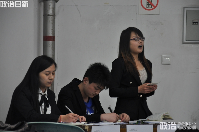 比赛现场座无虚席,很多观众站在教室后面驻足观看。大家情绪高昂,积极参与了群众提问环节。政治学院一名同学以其专业知识的解说后,反问反方辩手对民权的定位是什么?反方辩手略显踌躇地表示对于这个问题他们是查阅网上资料进行的定位。这位同学接着问道,“民生维护作为民权建设的经济基础,作为获得话语权的先行之策为何有不妥;另外反方所说的认为中国矿工遇难发生后是由于民权建设不善才使得这些弱势群体得不到合理保障,那么请问一句,如果他们一家老小的生存得以保障,他们又怎么会去做个很可能会搭上命的挖矿工?”话音刚落,现场响起了热烈的掌声。