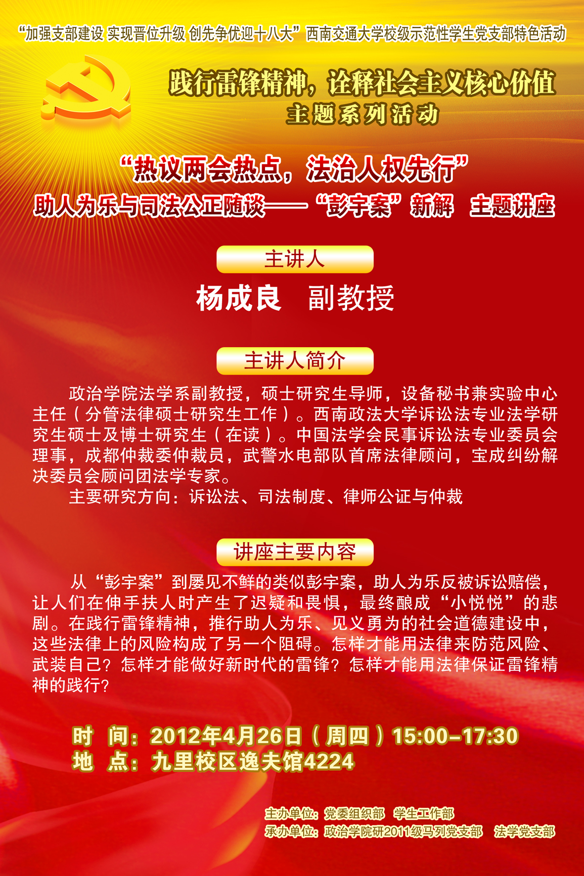 “热议两会热点 法治人权先行”助人为乐与司法公正随谈主题讲座海报