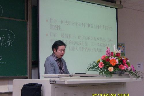 杨成良副教授的讲座围绕“热议两会热点,法治人权先行”这一中心展开,以助人为乐、司法公正以及“彭宇案”三个部分为主体内容,为到场的老师和同学作了专业细致层层深入的讲解。