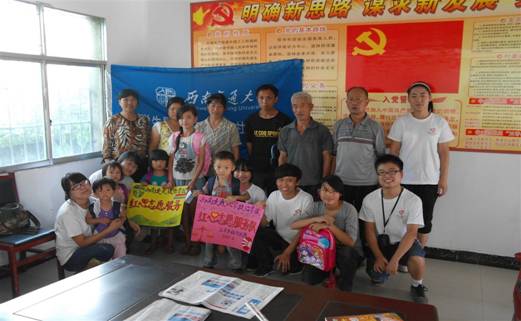 八月二十三日早晨,队员们都很兴奋,因为这一天我们将与小孩子共同度过。大家都想象着孩子们可爱的笑容与收到礼物的喜悦笑脸。经过与村支书的商量,我们将活动地点定在当地村委会的会议室。在积极做好准备工作后,队员黄兴德、何继梅,先后向孩子及家长讲解了关于道德和法律的常识,然后组长谢晓娟、队员戴肖玉、武昕睿等与孩子一起开展了丰富有趣的游戏。在这一过程中,每个人脸上都绽放出灿烂的笑容。最后,队员们将书包和课外书籍亲手给每个孩子,并合照留影。