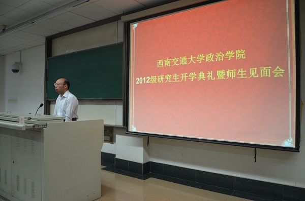 (记者 廖灿 报道 摄影)9月1日上午9点,政治学院2012级研究生开学典礼暨师生见面会在我校逸夫馆4219教室成功召开。院长林伯海教授、院党委书记刘占祥教授、副院长陈家宏教授、许义文教授、田永秀教授,院党委蒋小忠副书记出席了开学典礼。另外,我院博士生、硕士生导师以及2012级博士、硕士研究生参加了典礼。典礼由副院长田永秀主持。