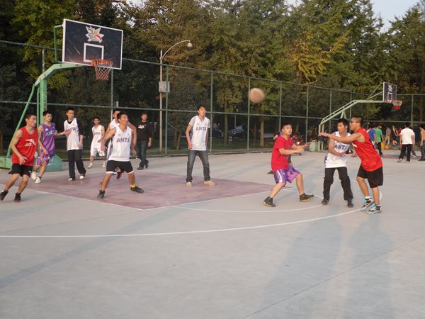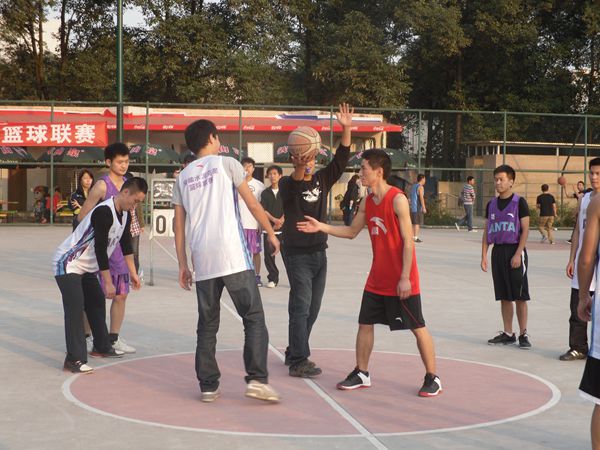 五点了,不知是谁的手表整点报时响了一声,裁判的哨声也同时响起,比赛开始了!首先,双方跳球,三、二、一,艺传学院的中锋为队伍抢到了第一次进攻的权利,后卫运球,中锋挡差,传球,中锋接球上篮不中,政治学院拿到篮板,推进,后卫传球给队长桂进弟,三步上篮,很可惜,篮球溜筐而出,看来双方一开始还是在互相试探和寻找手感。