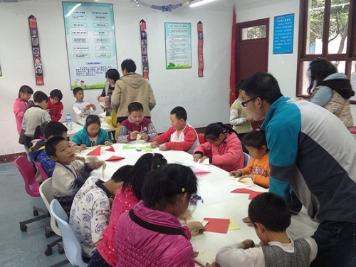 在近两个小时地颠簸后,红花分队一行十几人于下午3点20分终于到达了目的地成华区红花学校,红花分队的第三次支教活动就这样拉开了序幕。在队长与老师的带领下,舞蹈组、美工组、演讲组及话剧组的成员们有条不紊的进入教室做前期准备工作。随着上课的铃声敲响,学生们纷纷涌进教室。队员们立刻热情地投入到教学工作中来。其中,舞蹈组的队员们用灵动的舞姿和持久的耐心,教着每一个动作,让“歌舞青春”在同学们的脚尖绽放;演讲组的队员们用生动的语言和有趣的互动游戏令课堂沉浸在活跃的气氛之中,使得同学们的一双双小手都高高地举起,争抢着回答问题;美工组的队员用灵巧的双手和亲和的笑容让彩纸变成一只只小青蛙,跳跃在同学们的手中,也把喜快乐带进同学们的心中;话剧组的成员们用丰富的表情和形象的模仿,把同学们带进话剧的天堂,变换着不同的角色……