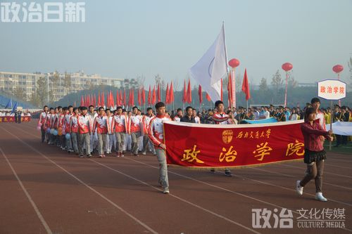 政治学院方队由学院党委副书记蒋小忠、团委书记高阳带领入场。经过主席台时,政治学院方队高喊“自强不息,日新月异”的口号,井然有序,响彻天宇,焕发的精神面貌令人耳目一新。整洁的服饰代表了他们的团结一致,坚定地步伐表现出了他们的积极自信,响亮的口号更是喊出了他们的澎湃激情。观众席上的同学们也高声地喊出口号,为自己的方队加油助威。