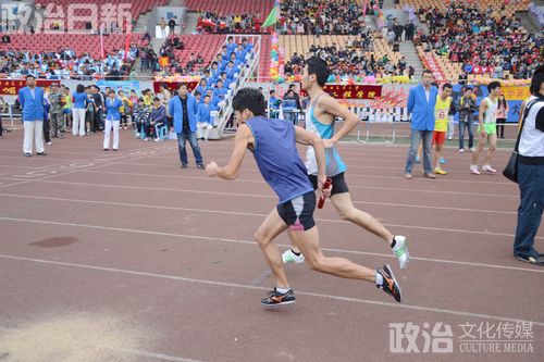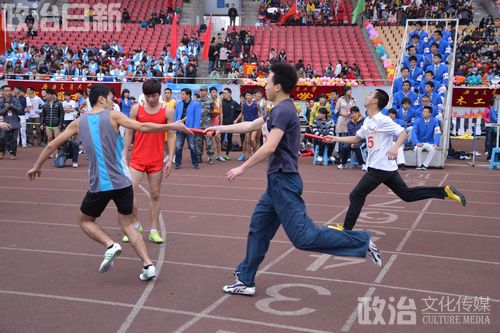 随着一声枪响,激动人心的接力赛正式开始,第一棒由宋绍华同学率先开跑,稍显落后,以小组第四的速度实现接力棒交接。第二棒刘小龙手握接力棒奋力直追,最终实现完美反超,以小组第一的速度将接力棒交给第三棒王成龙的手中。观众席上的同学们都情不自禁地站起来为他们鼓掌呐喊,响声震天。第三棒王成龙保持着第二棒的优势,并继续将距离拉大。第四棒王焕利轻松地将差距进一步拉大,与第二名差距达100米之多!看台上的所有观众都为四位齐心协力、奋力奔跑的健儿们加油喝彩,锣鼓声、呐喊声响彻整个赛场,将运动会气氛推上新的高潮。最终,政治学院的决赛选手们以坚韧不拔的毅力和顽强拼搏的精神赢得了本次接力赛,也赢得了在场观众的阵阵掌声!