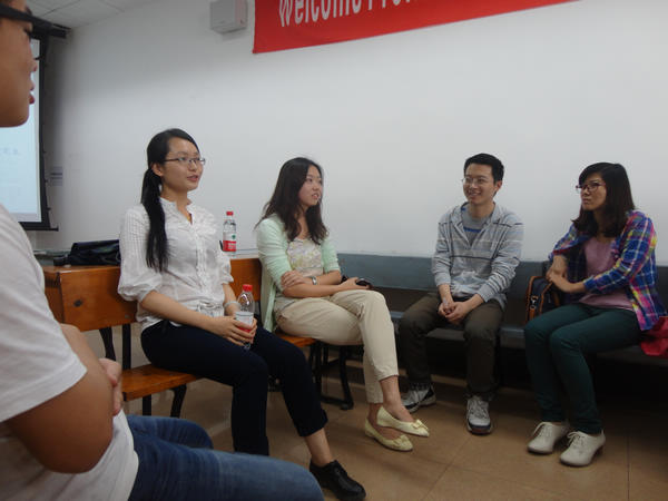 在整个活动中,两位学姐与同学们讨论的很兴奋,同学们都希望能有更多的机会与学姐、学长们有类似的交流,他们表示在这种交流中,自己都会学到很多经验。最后,活动在愉快的掌声中结束。