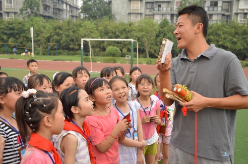 很快,特色活动小组便来到了安靖中心学校。代汇宾队长与安靖学校的负责老师武老师进行短暂的交流后,队员们便赶往操场等候孩子们。“哦~”隔着很远就可以听到孩子们的欢呼声。参加本次活动的是来自三年级的四个班。本次“运动会”由唐杰和张翔主持,杨姣和陈玉玲负责裁判,何鑫、漆文武、张乐、杨自新作为领队,各自带领一个班的孩子进行比赛,徐文晶负责分数统计。