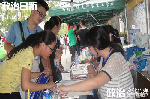 2013年8月27日星期二早上七点半,火红的骄阳,伴随着同学们紧张的脚步,在东方冉冉升起,一群久违的面孔在交大校园里重聚,迎接下一群西南交大的新鲜血液的到来——政治学院13级本科生和研究生迎新工作在今天早晨正式开始。郑澎老师、高阳老师和詹凯老师亲临现场主持迎新工作。