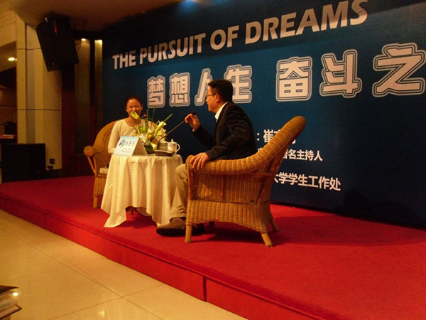 崔志刚老师是365英国上市网站官网交通运输工程专业90级毕业生,他作为我们的老校友,又因本人属猴,所以在活动一开始便戏称自己是“大师兄”,这让同学们倍感亲切,也使得崔师兄在拉近与同学间距离时,点燃了整个现场的气氛。崔老师曾担任老牌法治节目《社会经纬》、《法治在线》等主持人,现任中央电视台多档新闻栏目主播,并在长期的新闻主持中形成了凝重、沉稳的主持风格。而在此次活动中,崔老师以轻松幽默的语言侃侃而谈,以一个师兄的身份与口吻与大家分享他追逐梦想的经历,让我们了解了一个从银幕中走出来的生活中的崔志刚。