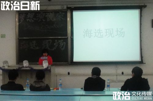 2013年11月06日晚7:30,热烈的气氛充盈了教室,由校学生会主办,政治学院承办的第一届“梦想演说家”海选在X2517正式开赛。该比赛用一个新颖的视频拉开序幕,从尼克胡哲的梦想到周立波等人演说视频的介绍,吸引了到场观众的眼球。紧接着主持人介绍了姚青松、张梦、王世红、吴泽熙等人气实力评委,比赛也正式开始。