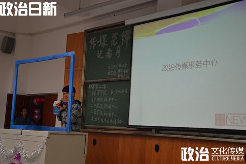 第一个环节是团队风采介绍,政治学院文化传媒事务中心的采访记者尹延威同学通过单口相声的方式对文化传媒事务中心的刊物、报纸、记者证、官方微博“政治学院_律政俏佳人”和“西交政院文化传媒事务中心”、官方网站、采稿工作、采访工作、专访工作、编辑工作等十多个方面进行了介绍,描绘出一幅较为完整的政院传媒画卷。