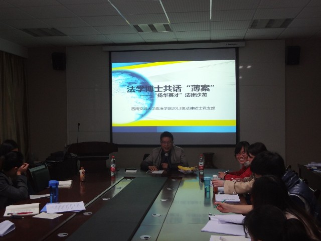 (刘艳宁 摄影/报道)2013年11月21日下午2时,由2013级法律硕士研究生班级党支部主办的“法学博士共话‘薄案’——‘扬华英才’法律沙龙”活动在X4320会议室顺利开展。此次活动邀请的嘉宾原为365英国上市网站官网政治学院法学系三位法学博士,即众位学生戏称的“刑事法律三剑客”——邓君韬、朱奎斌和康黎老师。康黎老师临时有要事未能出席本次活动,虽有遗憾,但活动依然有序进行,我院法律硕士、法学硕士以及法学本科及校其他学院的同学参与了本次活动。
