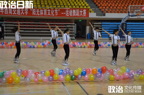 西南交大第二届阳光体育文化节运动舞蹈项目的专场比赛于11月23日晚7点在北区体育馆精彩上演。虽然气温很低,但是体育馆内却是激情四射、高潮连连,各个学院的舞蹈队们都拿出了自己的看家本领。政治学院共派出了六位同学参加今天的角逐,最终政治学院代表队在健美操项目上获得了总分第一名的好成绩,在本届体育文化节中又为政治学院赢得了荣誉。纵观表演,六位同学动作舒展自然、场上配合默契、编排合理紧凑,赢得了在场观众的阵阵欢呼。下面让我们看看他们的精彩展示吧!