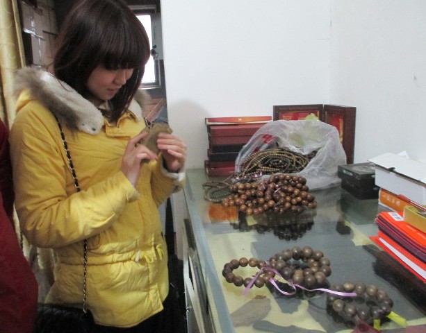 项目组行程的第一站是某品牌的乌木淘宝销售线下实体店。该实体店隐藏在一个幽静的居民小区中,店内库存以手钏、摆件为主,价格从几百元至数千元不等。在乌木来源上,店主表示它们大部分是从各地收购而来,其中又以岷江流域居多;收购了原材料后,首先应露天摆放以消除应力,再经过工厂打磨、抛光、防变形处理,最终制作成品。店主表示,“彭州乌木案”的判决结果对乌木产业造成了很大冲击。一方面,乌木原材料的收购价格在悄然间水涨船高;另一方面,政府亦以此判例为据,对乌木原材料的挖掘、收购进行管控。但政府的干预介入并无特定的部门负责实施,任意性较强;且执法过程问题突出,一旦乌木从来源地转移至生产、销售厂家手中,政府就对乌木不再过问;而在所有权归属问题上,店主坦言这是法律漏洞,他认为国家对乌木主张权利于法无据,因为乌木的属性是一种还未完全形成矿物的“中间过渡形态”,法律不该管。