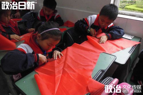 下午15点10分,14名支教队员在同学们热烈的掌声下走进了教室,开始了支教活动。为了提起同学们的积极性,活动刚开始,主持人便与同学们互动,向同学们提出各种富有吸引力的问题,在与同学们互动的同时讲解了红领巾的意义。在同学们都了解了红领巾的意义之后,支教队员们便出示了第一种道具——一片片红布。在支教队员的指导下,同学们用这些红布亲手为自己制作了一个红领巾。之后,同学们佩戴着自己制作的红领巾,面对着少先队旗进行了庄严地宣誓。接下来的内容是观看视频,队员们为同学们相继播放了“感动中国人物片段”与“中国科技发展”的视频,细心教导同学们要做一个好孩子。第三部分是谈理想,小朋友们各种奇异天真的想法为课堂添增了许多欢乐。最后一部分是地理,支教队员为同学们准备了一些中国地图拼图模板,将同学们分为十组进行拼图比赛,比赛过程欢乐重重,支教队员们也忍不住参与其中与同学们共欢共乐。比赛结束,队员们给获胜的同学们奖励了各种不同的小礼品并且为同学们讲述了中国版图的基本知识。