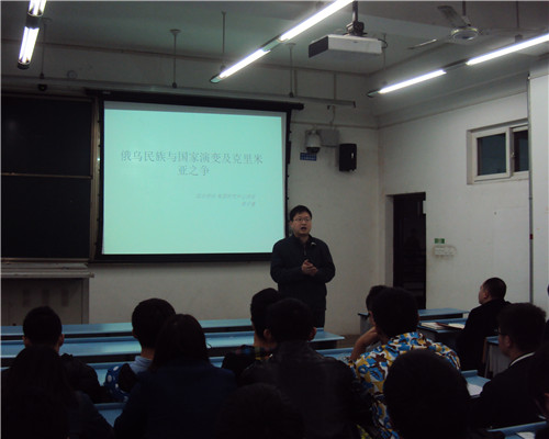 近日,克里米亚问题一直吸引着人们的目光,俄罗斯展现在世界面前的强硬形象也引来人们的热议。有着俄罗斯留学经历的李老师,以极具人文色彩的方式引出话题,并详细介绍了俄罗斯的文化、宗教传统以及现任总统普京等相关背景。在此基础上,李老师对克里米亚并入俄罗斯的原因进行了深刻的分析。他认为,在普京的精心治理下,现在的俄罗斯不仅军事实力强大,而且政治民主、社会福利优越,因此在克里米亚并入问题上赢得了绝大部分的克里米亚人的赞同和支持。不过克里米亚能够顺利并入俄罗斯的原因不限于此,李老师着重从乌克兰和俄罗斯的民族和国家演变上寻找更深层次的历史原因。与一般的时事评论不同,李老师以更加专业的学术角度来介绍俄罗斯、乌克兰以及克里米亚的历史渊源,为思考克里米亚问题提供了一个新的更为广阔的视野。他将历史追溯到希罗多德的《历史》一书中关于斯拉夫民族的记载,在公元前以来的长期历史演变过程中,两个国家和民族有合有分,一直都有着千丝万缕的联系。因此,俄罗斯总统普京才用了“克里米亚回家了”来评价克里米亚并入俄罗斯这一事件。通过李老师的生动深入的讲解,学生们对克里米亚问题进一步了解,增进了知识,扩大了视野。