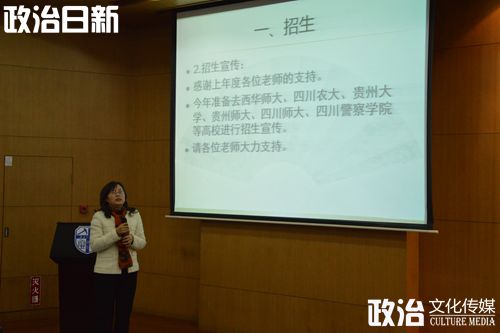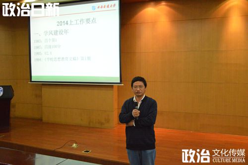 大会首先由研究生学院的相关负责老师介绍本学期研究生工作。她指出本学期研究生工作的第一项是招生,其中包括招生复试和招生宣传,以此来壮大政治学院的学生队伍,为学院建设提供源源不断的人才。接下来,老师介绍了关于培养方案修订、学术讲座的举办、导师遴选标准的制定及遴选方式、法硕实践基地的敲定等相关的工作大纲和部分细节。最后是研究生日常工作的布置和说明。介绍完研究生的相关工作以后,许文义副院长开始进行对本科生工作的阐述。他强调2014年上半学期的工作重点是学风建设,倡导政治学院要面向全校、全国和全世界学习,进行读书、口才、技能的多方面交流,有良好的精气神。他还提出要进行教育教学改革,用“教、学、考”提高自我学习的能力,提高整体教学质量。最后他指出要强化教育教学研究以及严格管理学院教师、学生、员工。同时,2014年我们学院还将开展人才引进、国际交流、思政研究教育等相关工作。