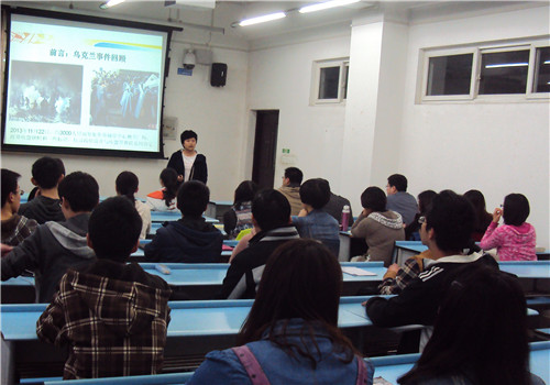 此次讲座持续了一个多小时,章老师幽默的演讲风格给学生们留下了深刻的印象。最后,章老师总结了克里米亚问题折射出的国际关系的错综复杂,以乌克兰将何去何从这一问题为结尾,指引了一个继续思考的方向,鼓励感兴趣的学生们继续关注和研究“克里米亚入俄”背后的问题。