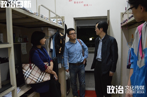 4月17日晚,为进一步加强与学生的交流沟通,了解学生的学习情况和生活情况,政治学院党委书记刘占祥教授,学院党委副书记郑澎老师,团委书记高阳以及吴磊老师来到政治学院学生宿舍进行走访慰问。