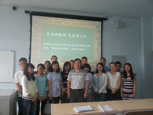 ( 梁莉 报道 荣然然 摄影)为拓展视野,丰富知识,全面了解在“博洛尼亚进程”中各国的教育发展现状,并对比当下我国的教育改革现实形成一些自己的思考,2013级马列硕士班特于5月19日上午9:50在X9133召开了“博洛尼亚多数进程”读书交流活动。政治学院院长助理、近现代史教研室主任胡子祥教授作为特邀嘉宾和评委出席了此次活动。此次活动由班长许留锋主持。