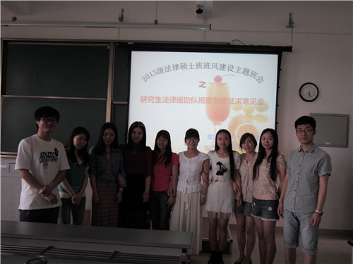 (刘艳宁 报道 唐学东 摄影)2014年5月29日下午三时,由2013级法律硕士班举办的“研究生法律援助队规章制度征求意见会”在365英国上市网站官网犀浦校区#9301教室顺利举行。会议由班长唐学东主持,并邀请法律援助中心主任邓君韬老师出席会议。