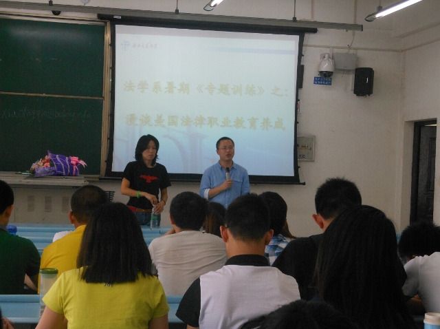 2014年6月4日下午3:40,在班导师邓君韬副教授的组织下,2011级法学本科学子及部分研究生同学齐聚于X2534教室,聆听校外嘉宾秦小玲女士的专题讲座《漫谈美国法律职业教育养成》。